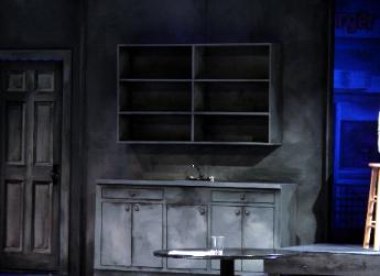 | The Opera Theater decided to give Puccini's La Boheme a current flavor by setting it at the University of Delaware instead of 19th Century Paris (Bohemians are, after all, on all college campuses). With that in mind, Seger created a condensed Newark Main Street using three representative buildings (Wonderland, Caffe Gelato, and the Cheeburger Diner) for his backdrop. Act I became a rundown apartment in Newark, Act II was staged in front of Klondike Kate's, and Act III included one of the many wall and gate scenes found on campus. |