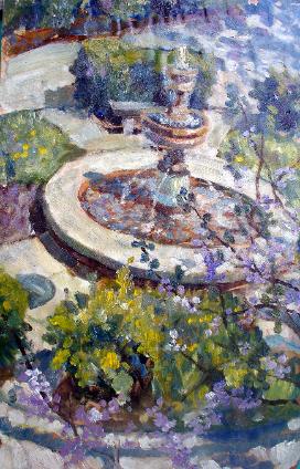 | The Chancellor's Fountain oil on poster - 17"x 11" 1975 Collection of the Artist |