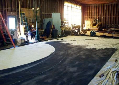 | A landscaping concern shares the space with him as he needs it, generously making room for his large drops and wagons. |