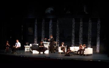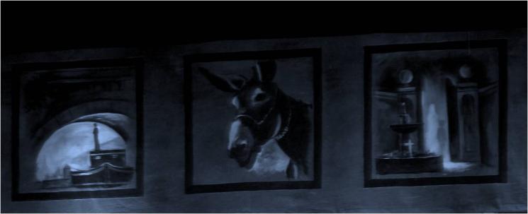 | For the astute viewer, the three paintings above the windows represented each of the evening's offerings, hence, a triptych. |