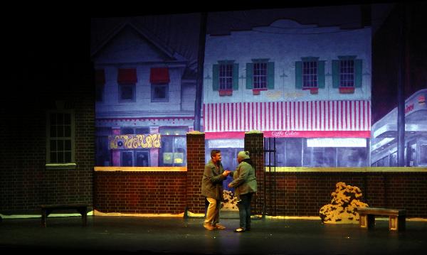 | The Opera Theater decided to give Puccini's La Boheme a current flavor by setting it at the University of Delaware instead of 19th Century Paris (Bohemians are, after all, on all college campuses). With that in mind, Seger created a condensed Newark Main Street using three representative buildings (Wonderland, Caffe Gelato, and the Cheeburger Diner) for his backdrop. Act I became a rundown apartment in Newark, Act II was staged in front of Klondike Kate's, and Act III included one of the many wall and gate scenes found on campus. |