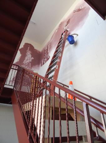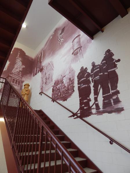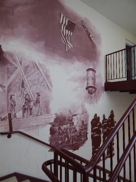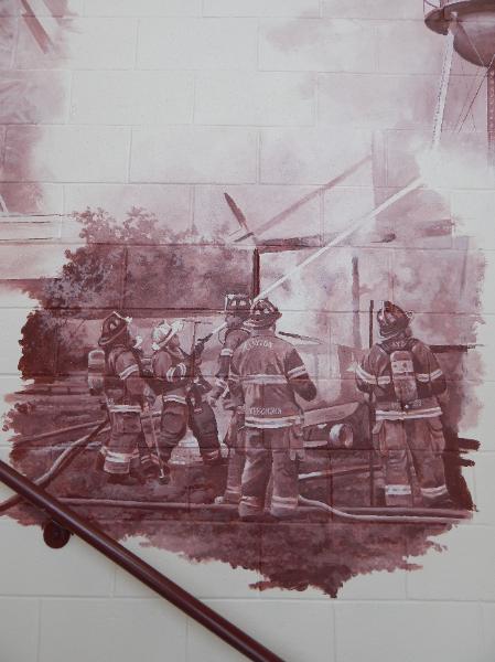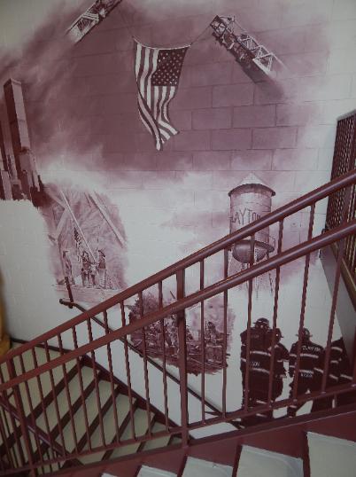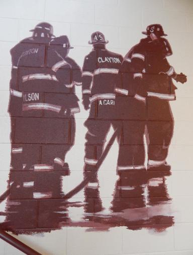 | The Stairway has afforded Seger the opportunity to create a three-sided mural filled with firefighting images from history - Clayton in particular - hence the Legacy Stairway. |