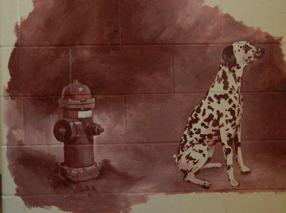 | Something for the kids (and the one in all of us). The company now has its own forever dalmatian at the foot of the stairs. (Hydrant to follow.) |