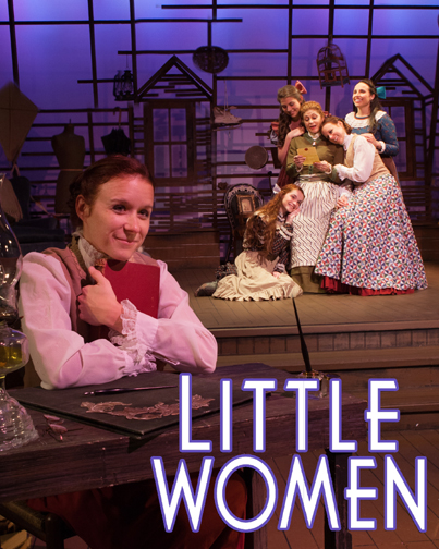 | Seger first extended the scenery on the walls of the theatre last year during the summer productions. With the Clear Space thrust stage almost demanding something behind the action, he serves the storytelling with images -- this time including Civil War era photographs and portraits of Louisa May Alcott. |