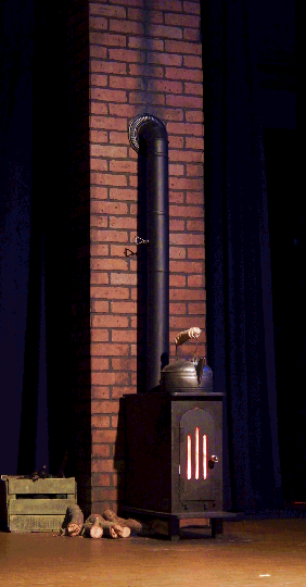 | The need to burn something in a fireplace required the creation of a believable stove. |